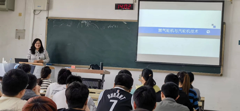 张红梅主任设计师结合自己多年来从事汽轮机、燃气轮机的设计工作经验,结合国家“双碳”目标和国家能源发展战略给燃气轮机、汽轮机行业带来的机遇与挑战,向同学们介绍了燃气轮机的发展战略、燃气轮机的国内设计研发能力及国产化状况、燃气轮机工作原理主流产品及其结构特点、燃气轮机的联合循环配置及成套技术、燃气轮机的服务模式及能力、汽轮机的最新发展现状等相关内容和技术。