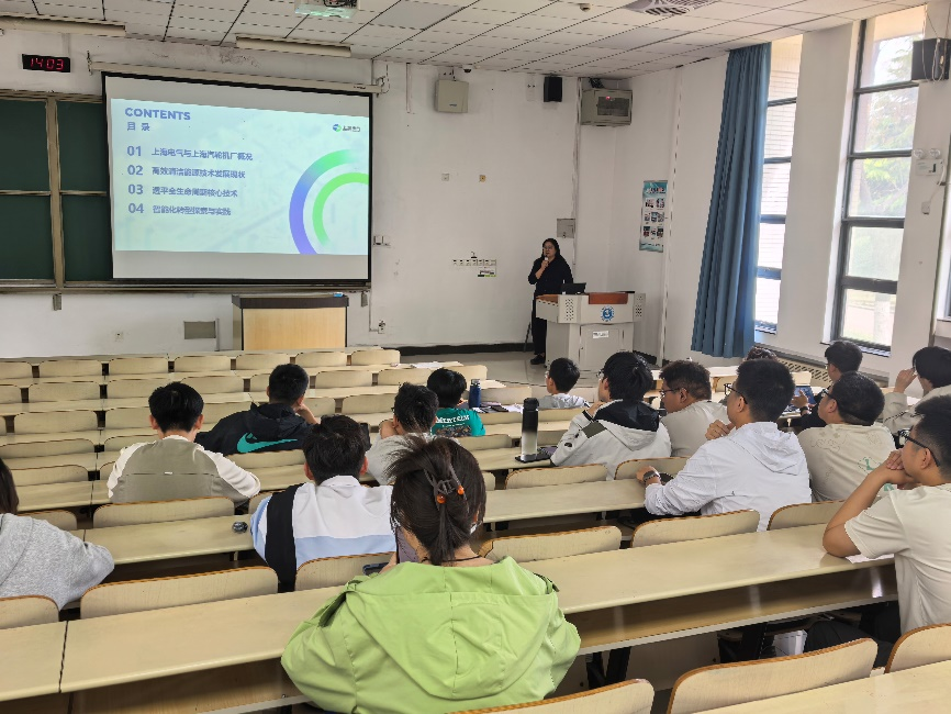 张红梅高工结合多年来从事汽轮机、燃气轮机设计研发的工作经验,向同学们介绍了国内汽轮机与燃气轮机的设计研发能力及国产化状况、燃气轮机的联合循环配置及成套技术、汽(燃气)轮机的最新发展现状、人工智能及数字化背景下汽轮机与燃气轮机的发展机遇与挑战以及上海汽轮机厂在企业数字化、智能化转型升级和工业软件自主化与智能制造领域的进展。