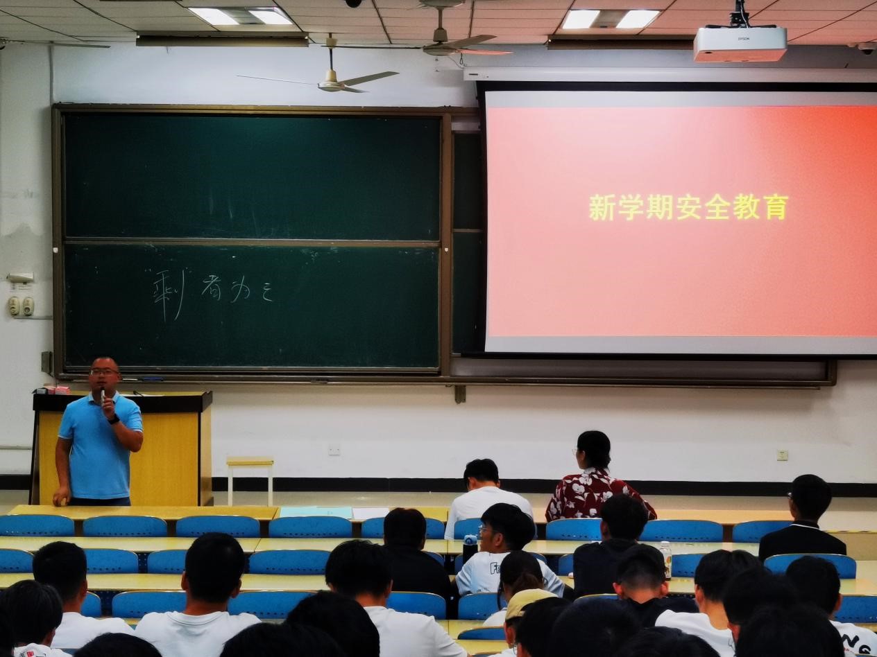 会中,卜永强老师对同学们进行新学期安全教育。卜老师强调了宿舍安全、宿舍卫生、晚点名签到和网络诈骗等问题。他说,宿舍安全是校园安全的重要组成部分,在宿舍内不使用违禁电器,阳台不堆放纸箱杂物,时刻警惕校园火灾等;预防网络诈骗,不轻信他人,未经核实不给他人转账等。他强调在日常生活中,同学们要保持宿舍环境的卫生整洁,维持正常的生活作息,舍友之间互相尊重互相包容。