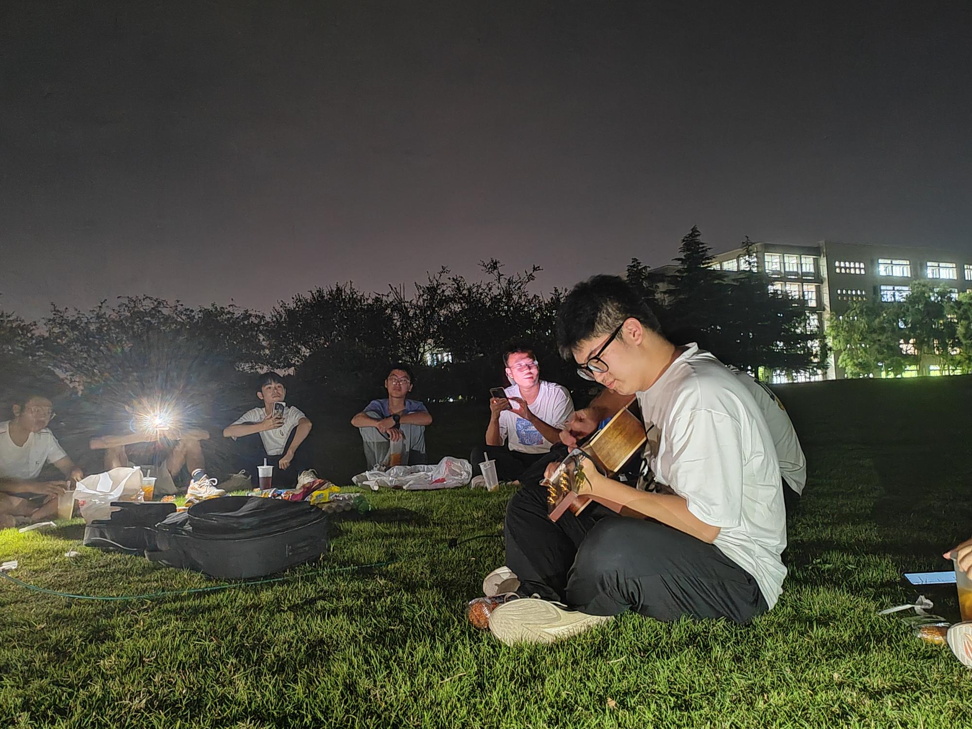 活动开始前,各班班委准备了气球、饮用水等活动物资并布置现场。本次团建活动形式丰富,内容新颖,现场氛围热闹轻松。活动期间,班级委员组织同学开展“狼人杀”、“看图猜成语”、“击鼓传花”等游戏,围坐在一起聊天沟通,在欢乐的氛围中促进交流。互动环节中各班同学十分积极,口技、唱歌、吉他、相声等才艺展现了新生的活力和激情,也促进了同学间的了解。