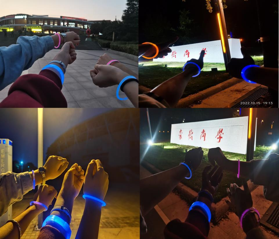 活动前期,主办方通过线上说说和线下张贴海报的方式进行宣传,同学们以寝室为单位报名参加活动。活动分为熄灯打卡和荧光夜跑两部分。参加活动的同学关闭寝室电器一小时并上传照片完成熄灯打卡。完成打卡后,参与同学以小组为单位在二食堂广场集合签到并领取荧光手环开始荧光夜跑。同学们按照指定路线,在校园里的七个标志地点进行拍照打卡,同时使用手机APP记录运动轨迹。完成夜跑后,同学们用软件完成捐步,为公益活动增添一份绵薄之力。活动当天完成夜跑的小组将继续进行每天五千步以上、不少于七天的微信捐步。工作人员审核后按每组完成情况给予志愿时长等奖励。此次活动不仅丰富了同学们的课余生活,还培养了大家自主锻炼、节约用电的意识,赢得了同学们的一致好评。能动20-3班的沈小玥同学表示:“‘荧光夜跑’不仅提高了我们节约用电的意识,在锻炼体质的同时也增进了舍友之间的感情,完成活动之后很有成就感。”