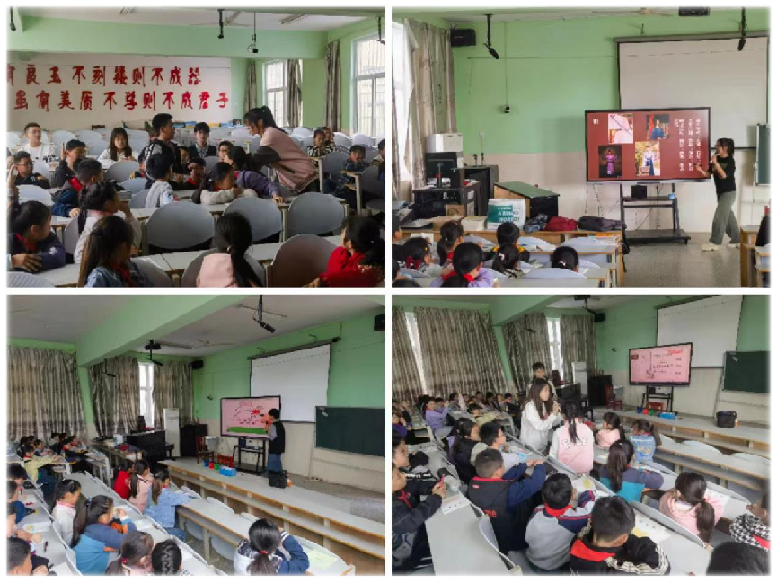 青协项目部部长池有以及办公室部长常钧凯的带领下,支教实践团于2023年4月14日下午前往徐州市铜山区三堡镇周庄小学。在周庄小学校长和各位老师的协助下,团队中的四名志愿者分别从垃圾分类、中华传统汉服文化、乐理知识、趣味数字绘画等四大方面为小朋友们展开讲解。通过垃圾分类知识的详细讲解,增强了小朋友们的环境保护意识;传统汉服蕴含的文化底蕴,吸引了他们对传统文化的关注;数字与绘画的有趣结合,提高小朋友们对学习数学的热情;大小朋友的温馨合唱,让他们感受到来自各界的爱与关怀。
