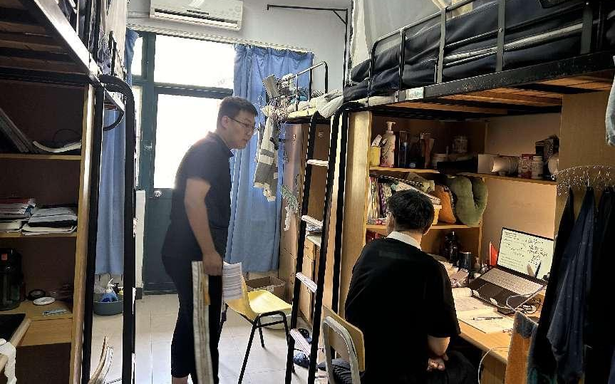 于基伯副书记对宿舍用电安全、消防安全、卫生状况等多方面进行了检查,内容主要包括是否存在违规使用大功率电器、私拉乱接电线、人走未断电、易燃杂物堆积等现象。在检查宿舍的同时,于基伯副书记也对学生展开安全教育,他提醒同学们不仅要提高安全意识和自我保护能力,也要注意维护宿舍的干净整洁,养成良好的生活习惯,共同营造良好的宿舍氛围。