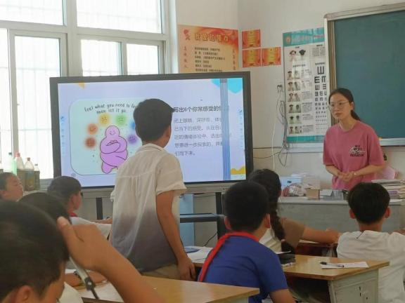 6月12日,首次“认识情绪”课程顺利开展。实践团成员阐述了8种基本情绪在生活中的重要意义,帮助孩子们树立正确的情绪观,并通过绘画和“情绪大冒险”游戏引导他们接纳并合理表达内心情绪。孩子们袒露心声,有独处导致的恐惧,有亲人离世带来的悲伤,也有成绩优秀、家庭和睦的喜悦。课程结束时,实践团成员鼓励孩子们写下对家人的真挚话语,以此释放因父母长期不在身边而积压的情绪。在被真挚言语感动的同时,成员们也发现部分学生心理存在显著问题,并在课后迅速联系家长,反馈孩子心声,获取家长的鼓励视频。