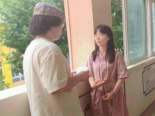 实践团成员围绕学生心理健康对周庄小学老师进行采访