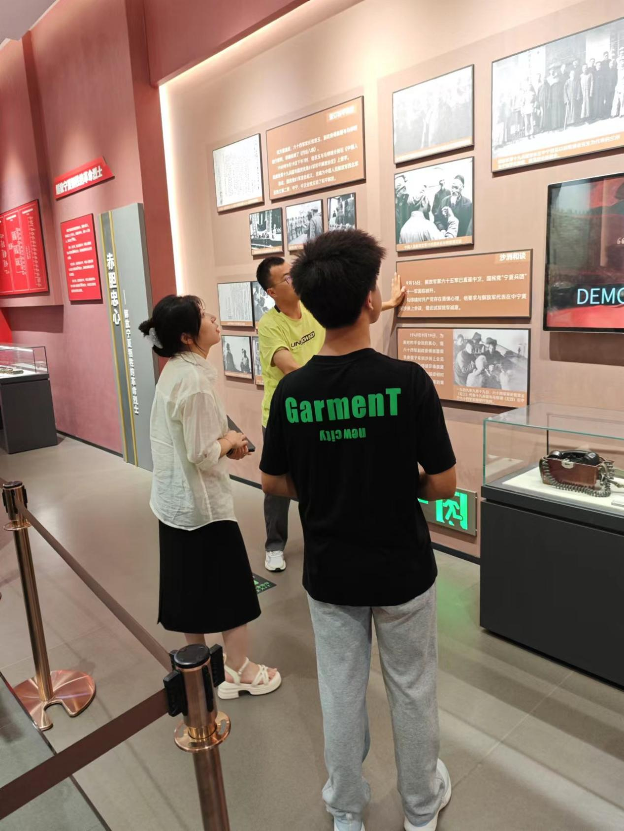 在陵园内,实践团成员参观了革命烈士纪念馆。纪念馆内展出的一系列珍贵影像资料及历史实物生动再现了解放战争时期、抗美援朝时期、社会主义建设时期等阶段的波澜壮阔的历史画卷。这些展品不仅记录了吴忠市从一个小城发展壮大的历程,也生动展现着中国人民为民族独立和国家富强不懈奋斗的精神。参观结束后,实践团成员黄昊同学表示:“我们今天的幸福生活是无数革命先辈用鲜血换来的。历史的接力棒传到了新时代青年手上,我们更要继承先辈遗志,为实现中华民族伟大复兴的中国梦贡献自己的力量。”