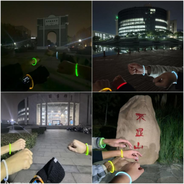 11月28日起,工作人员借助线上平台面向全校师生广泛宣传活动信息。夜跑活动于12月6日正式启动,参与者在夜跑出发点签到后领取荧光手环,并提交自己事先准备写有环保建议的明信片。同学们按指定路线在校园七个标志地点拍照打卡并记录运动轨迹,于完成夜跑后回到出发点领取一张来自其他同学的明信片,实现爱心互换。此外,参与者还需在夜跑结束后进行至少7天的微信捐步,为公益事业贡献力量。本次活动得到了同学们的热情响应,夜间校园内,一组组在跑道上闪动的荧光不断为校园增添亮色。旺财28