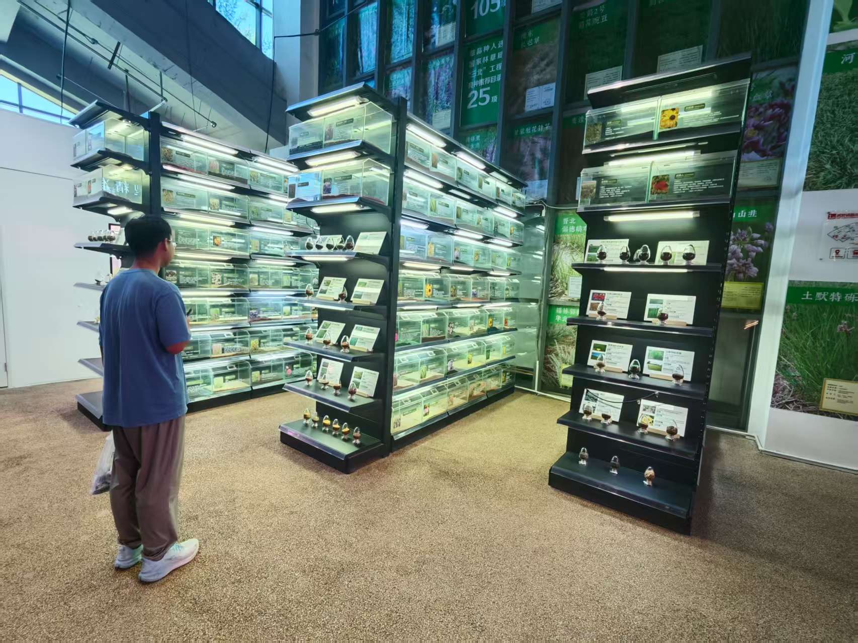 首站踏入种质资源库,实践队队员仿佛进入一座植物的“诺亚方舟”。“大家现在看到的是我们独特的种子标本墙,”资源库负责人指向展示区域,“它是依据‘荒漠-草原-湿地’的自然生态梯度精心设计的。不同生境下的种子,其形态结构蕴含着非凡的生存适应智慧。”讲解员进一步举例说明:“例如,兰草种子极其微小,直径仅约0.3毫米,其表面特化的膜质结构,使其能够高效地借助风力实现远距离传播。与之形成对比的是油桐种子,直径可达5厘米,其坚硬致密的木质素结构形成的保护层,使其能够耐受动物消化道环境,从而完成扩散。再看沙棘种子,其表面的棘状突起是一种精妙的适应性特征,既利于随风滚动迁移,也便于附着在动物皮毛上进行传播。”实践队员宋胜民表示:“从实验室的基因扫描到草原的重生,蒙草让我懂了生态保护要顺应自然。这份认知鼓励我在未来用行动守护绿色。”这些种子不仅是植物多样性的瑰宝,更是生态修复的关键“弹药”,在生态重建中发挥着不可替代的作用。