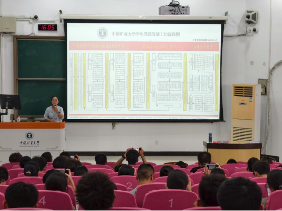讲座中,王传棨首先介绍了中国矿业大学的历史沿革,回顾了学校自1909年创办以来,历经14次搬迁、12次易名的百年沧桑。他结合学校创办的历史背景,深刻阐释了每一位矿大人应有的责任担当,以及“开发矿业,开采光明,建设祖国,造福人类”的矿大人骄傲。王老师强调,作为新时代的矿大学子,我们要主动承担起传承矿大精神与文化的责任,厚植家国情怀,为国家发展贡献青春力量。
