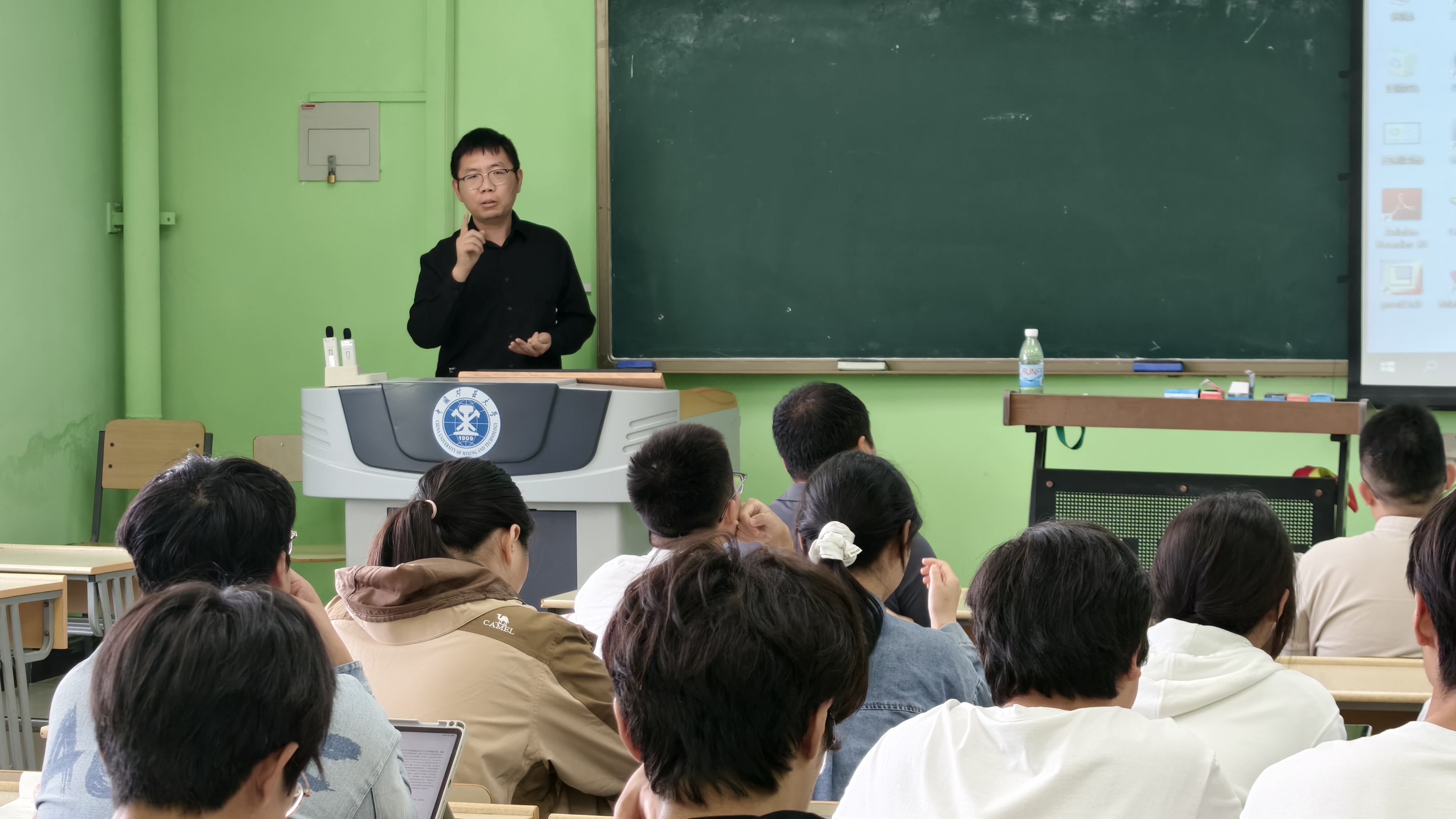 在博学楼4号楼C302举办第62期“松苑有约”——“能聚英才,储见未来”科研创新与人才培养交流会。活动由王文礼老师主持,郭飞强、刘昌会、张纪豪三位老师联袂主讲,2024级近五十名学生参加,旨在帮助大二学生了解专业分科、科学规划大学生涯。