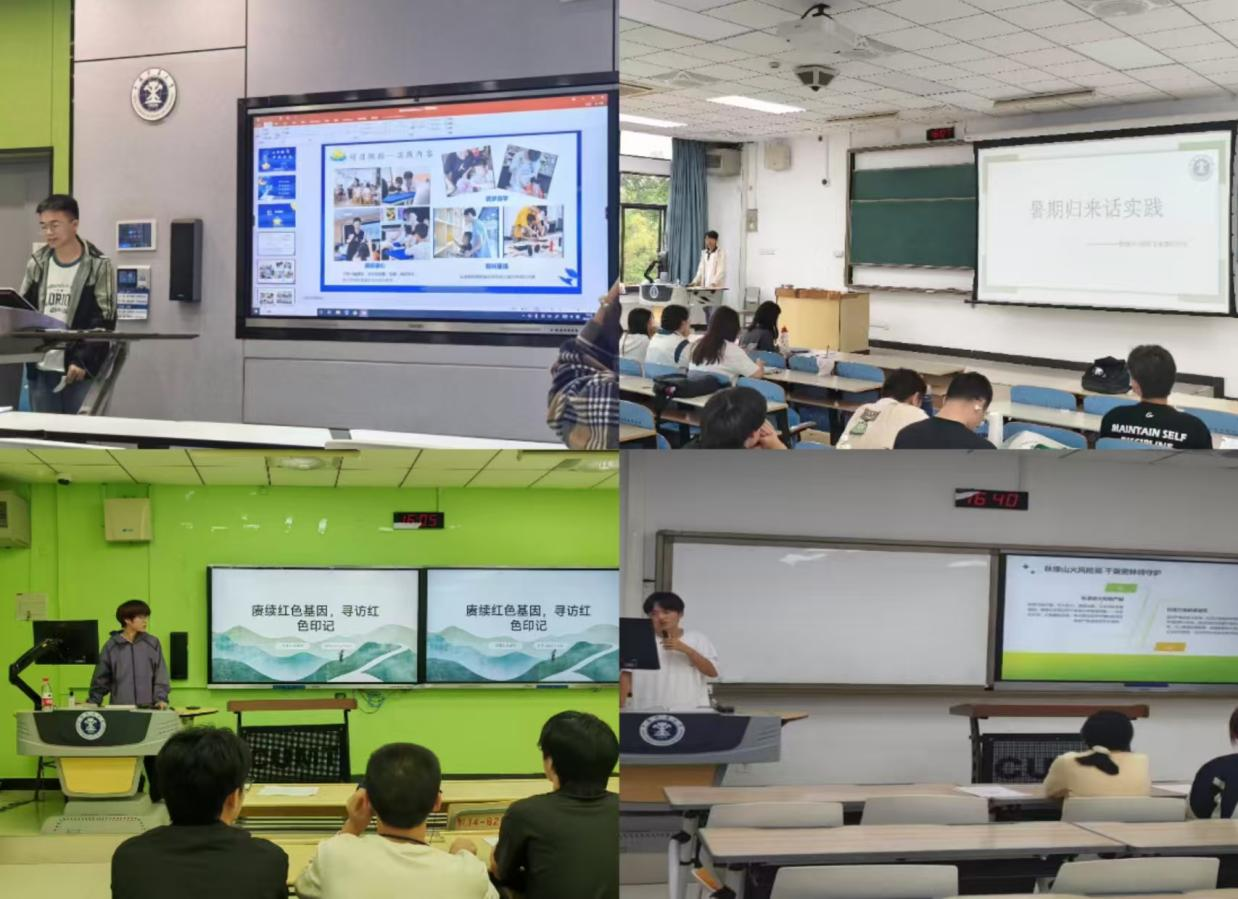 低碳能源专业特色,又紧扣思想引领与社会服务需求。例如革命精神传承团队重走红色足迹,前往革命纪念馆参观、采访老党员、拍摄红色故事短视频,24级9班赵方阳同学在汇报台儿庄实践时感慨:“深刻体会到抗战战士的艰难与爱国情怀,我们必当不忘初心建设祖国”。活动现场互动氛围浓厚,答辩结束后,班级成员围绕实践细节提问交流,评委针对成果成效量化、缩减答辩时间等问题提出优化建议。各班级均表示将吸收建议,为后续实践积累经验。