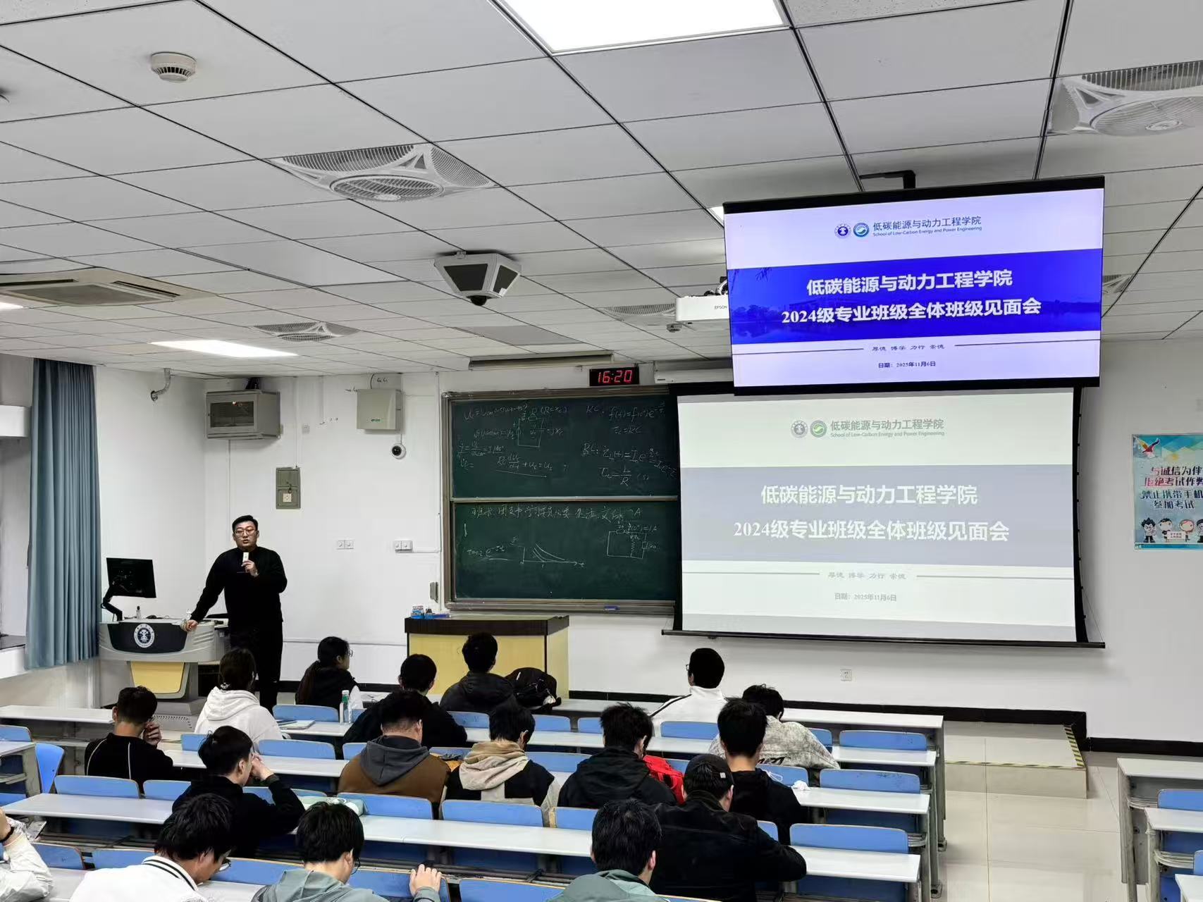 于博1B201召开2024级分班后的首次班委见面会,会议由辅导员王文礼主持,各班班委参会。