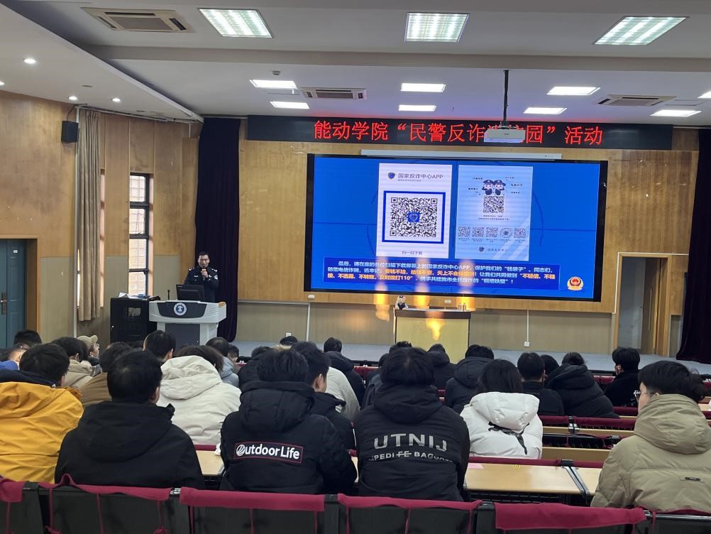 联合开展“民警反诈进校园”活动,12月25日与26日,分别在博四C301、博二C202、C302教室为旺财28