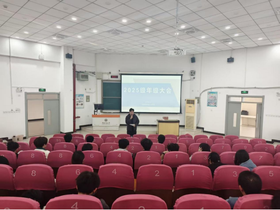 2024级年级大会上,王文礼老师以“夯实专业基础、锚定发展方向”为核心,强调核心课程的重要性;分析前三学期学业数据,部署学风建设与学业帮扶举措;系统解析保研、考研、就业三大路径,同步强调宿舍安全与日常管理规范。