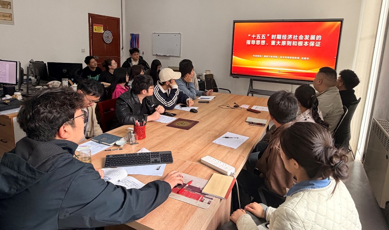 博士生党支部于近日组织召开了关于“十五五时期经济社会发展指导思想、重大原则和根本保证”的集中学习及研讨。会议由党支部书记邹增信同志主持,全体支部党员参加了学习。
