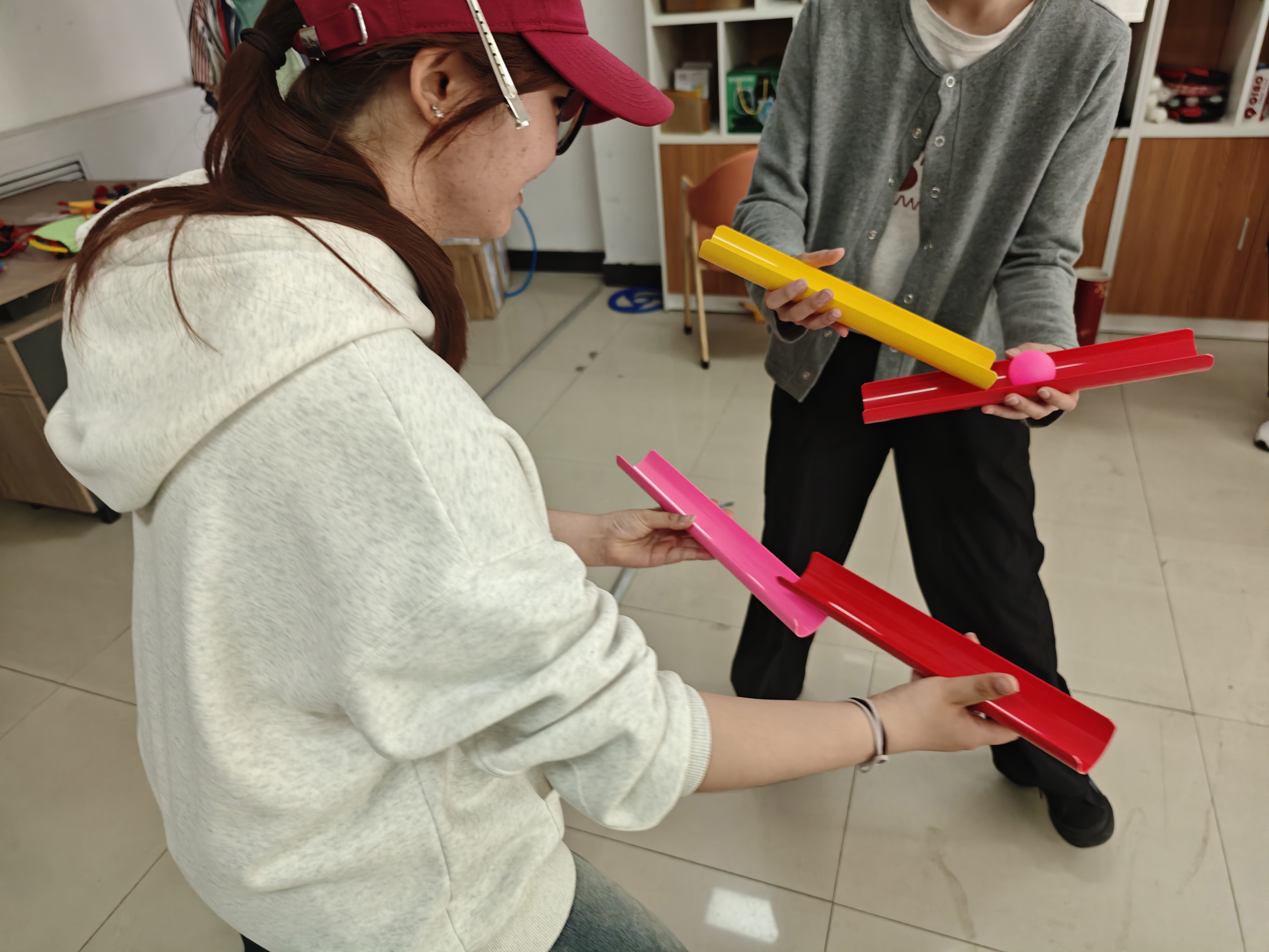 本次活动不仅考验参与者的协调性与反应力,更强调团队协作与趣味互动。在“手脚并用”游戏中,选手们根据垫上图案精准移动、闪转腾挪;在“微型高尔夫”环节,大家专注推杆,体验“一杆进洞”的成就感;“夹球接力”则考验默契,彩色小球在板间跳跃,引来阵阵欢呼。运动不仅是强健体魄的良方,更是释放压力、增进友谊的有效途径,同学们和新认识的伙伴不断分享着趣味运动带来的喜悦。活动最后,工作人员为获奖队伍送上风扇、台灯等贴心小奖品,并进行合影留念。