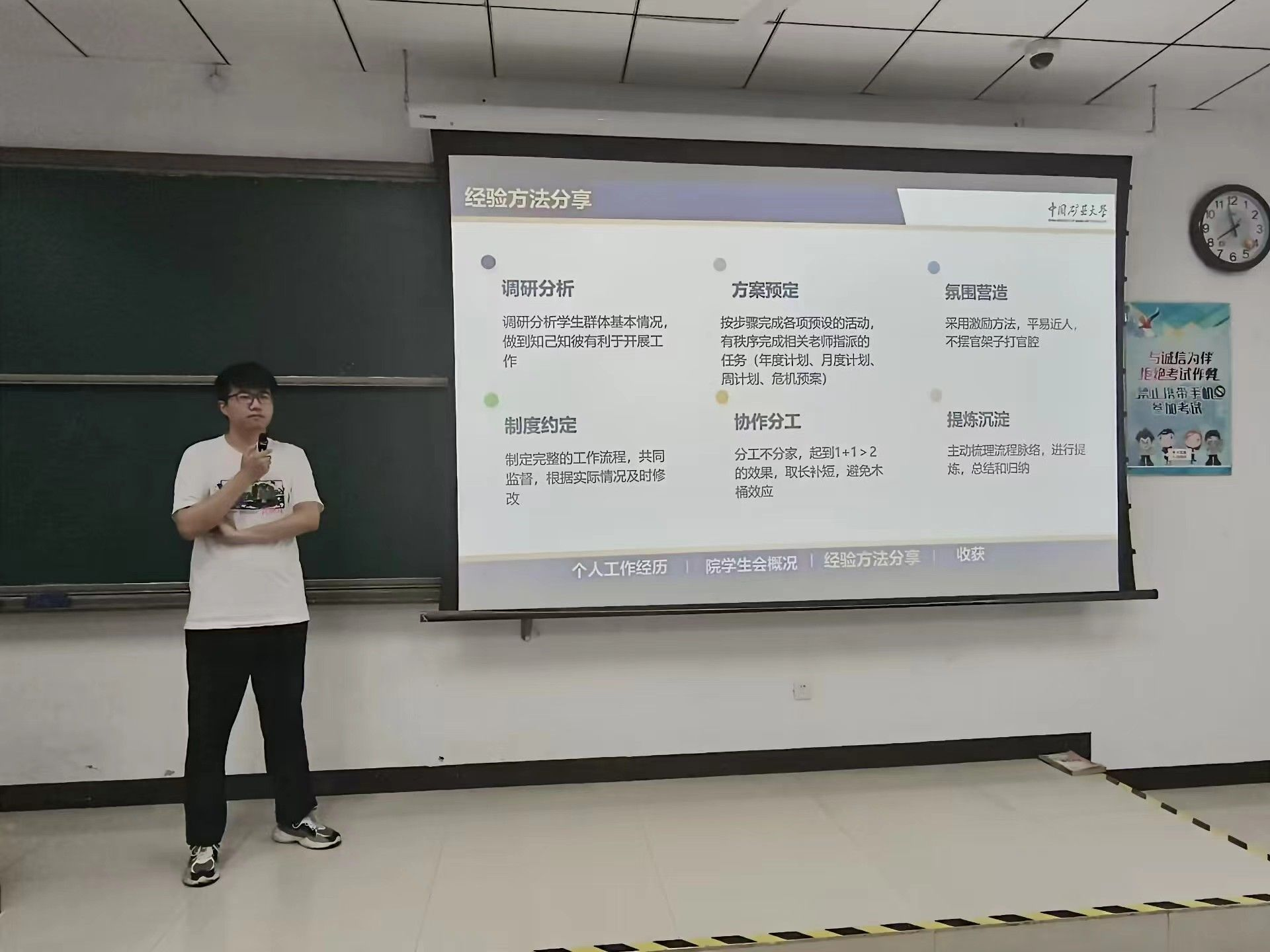 他回想,做学生工作的初期,感觉做学生工作大多是给别人帮忙搬椅和挪桌之类,当他担任学生会主席后,发现实际并非这样。作为学生会主席,李吉龙需要协同各个部门开展一系列工作,这些工作的内容与之前的工作截然不同。不仅如此,他还需要时刻关注学生会各部门的工作情况以及各成员的实际情况,从而分配工作以求人尽其用。这些工作既是对李吉龙的工作内容,也要求李吉龙在学生工作中不断提高自己的应变和统筹能力。
