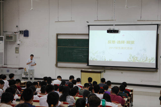 在博学楼二号楼C102、C101教室召开了2017级生涯规划交流会。2017级辅导员丁建范、韩秀霞,兼职辅导员田潇濛及17级全体同学参与此次大会。