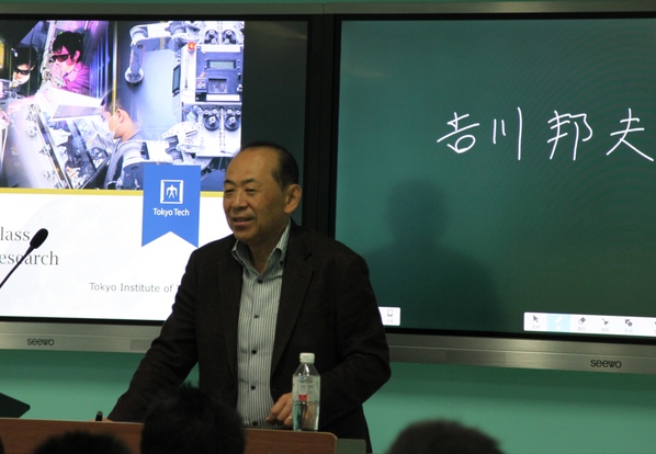 首先,吉川邦夫教授简单介绍了东京工业大学的教学、科研环境以及自己研究的领域和内容,并告诫各位同学要加强自己解决问题的能力,找到解决问题的方法,培养一种自己的广泛兴趣并将研究目标和实践结合起来。讲话中,他强调同学要积极展示自己的才能,努力提升自己的口语表达能力。