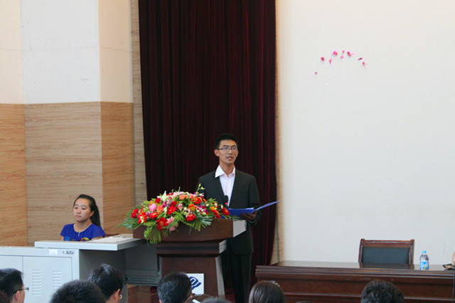 各个领导的发言中隆重召开。李意民院长的讲话让在场所有2013级新生更加明确了自己在学校的学习方向,要先学会做人而后学会学习,学会创新,要从大学的第一天起就把握好自己,变青春大学为美好未来。新生代表伍蕴琦以及学生会主席魏赏赏从青年的角度发表了自己对大学的憧憬和亲身感受,鼓励在座的各位要敢于尝试,要勇于创新,充满青春正能量。党委书记陈清华则更加深刻的阐述了大学的含义,要成长成为一个睿智的人,展现自己的个人魅力,陈清华书记的一声“你们准备好了吗?”带动了全场的积极昂扬气氛,再现了13级新生的自信面貌。最终在庄严的校歌声中,全体同学共同起立记住这一人生中重要时刻。