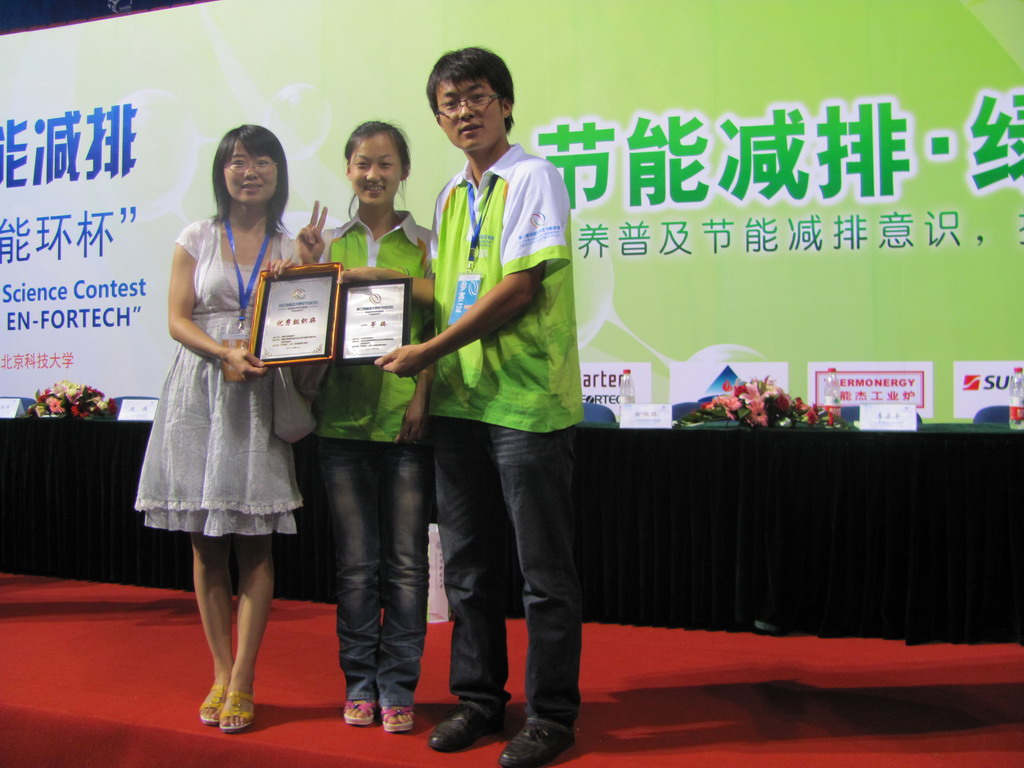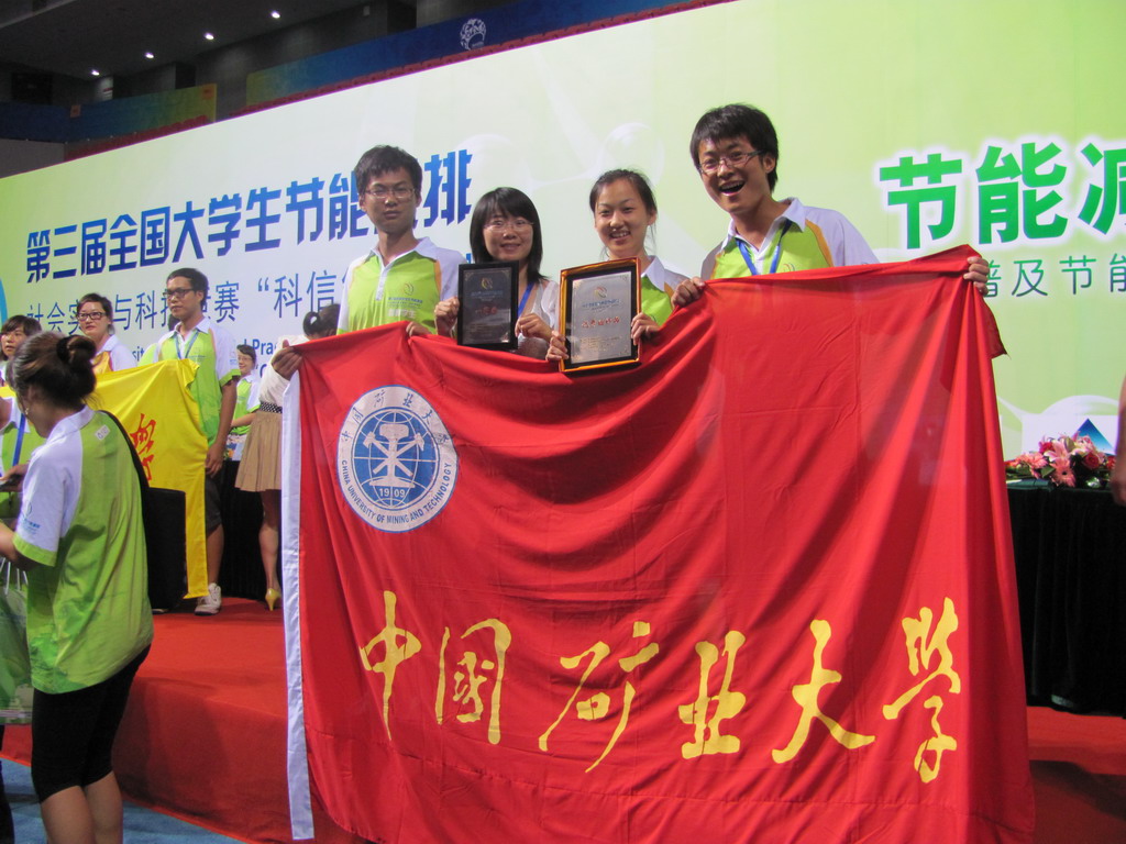 马龙信等同学的作品最终荣获一等奖,并为同时中国矿业大学也获得优秀组织奖的荣誉,这是第三届全国大学生节能减排社会实践与科技竞赛中我校获得的唯一奖项。
