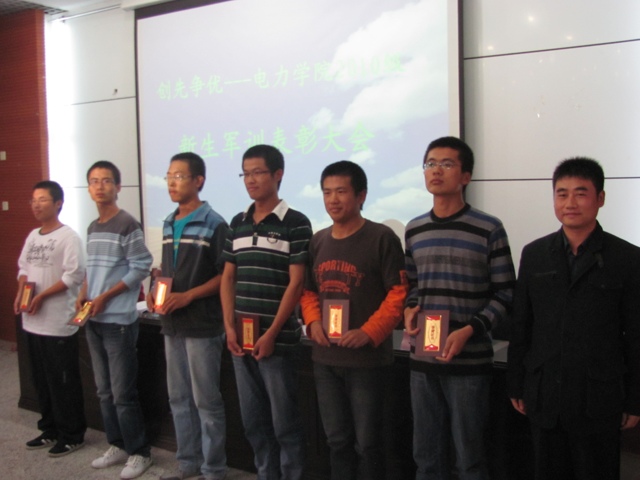 辅导老师张宇鑫,团委书记田玉河,辅导老师弓海军和党总支副书记张磊分别为军训先进班级,军训先进个人,内务优秀宿舍和军训个人表现突出者颁发了奖状和证书。随后,学生代表热能2010-3班石强在大会上发言,向大家讲述了军训期间以及军训后的感悟和收获。张磊书记在大会上发表重要讲话,对电力旺财28