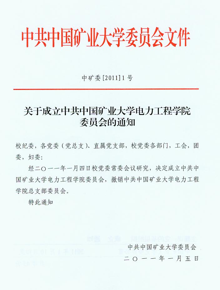 2011年1月4日,经我校党委常委会议研究,决定成立中共中国矿业大学电力工程旺财28