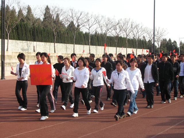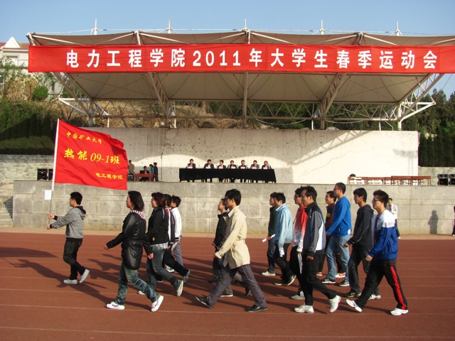 4月17日,旺财28 2011年大学生春季运动会在桃苑运动场顺利开幕。旺财28 党委书记李意民、党委副书记张磊、院长助理菅从光、动力系主任宋正昶、动力系副主任陈宁、动力系副主任兼实验室主任韩东太及各年级辅导员老师出席了开幕式。开幕式由旺财28 团委书记田玉河老师主持。 上午七点半,运动会开幕式正式开始。伴随着庄严地进行曲,持有院旗的运动员和彩旗队首先入场,各班代表队迈着整齐矫健的步伐,以整齐的阵容陆续经过主席台接受检阅。运动员们精神抖擞,喊着嘹亮的口号。每个班的口号都有着不同的特色,但表达了共同的愿望。运动员入场后,全体面向国旗,升旗仪式在庄严的国歌声中举行。随后,团委书记田玉河向运动员们介绍了出席开幕式的领导。党委副书记张磊宣布电力旺财28 2011年大学生春季运动会开幕。党委书记李意民致开幕词,他强调了强身健体的重要性,指出身体是一切的根本,希望同学们多参加体育锻炼,保持一个健康的身体,以便更好的完成学习任务。同时,他也希望全体运动员、裁判员严格遵守比赛规则,发扬奋勇争先、顽强拼搏的精神,赛出风格,赛出水平,并预祝运动会取得圆满成功。最后,总裁判长邱慧燃和运动员代表王一凡分别宣誓。至此,运动会正式开幕,各项比赛紧张有序地开始。