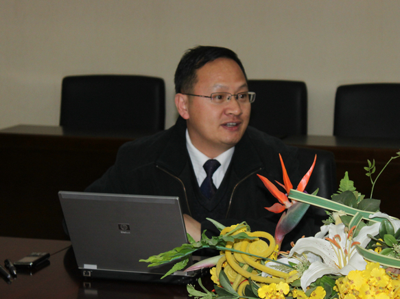 兼职教授表示感谢。随后他为刘博士颁发了聘书并发表讲话。他说刘博士的到来对于促进我校与美国科研机构在新能源项目方面的合作具有积极的意义,刘校长希望刘坤磊博士能够与我校教授在新能源技术的项目引进、技术创新和科研合作方面展开更广泛的合作,开创新的局面。同时,刘校长也邀请刘博士能够参与到我校更高水平师资队伍的建设中来,与矿大师生一起探讨学术问题。接着他和刘博士与在座教授们探讨了以高端研究带动本科生培养等相关问题。刘坤磊博士表示以后会努力工作,为矿大的建设以及对青年人才的培养做出应有的贡献。