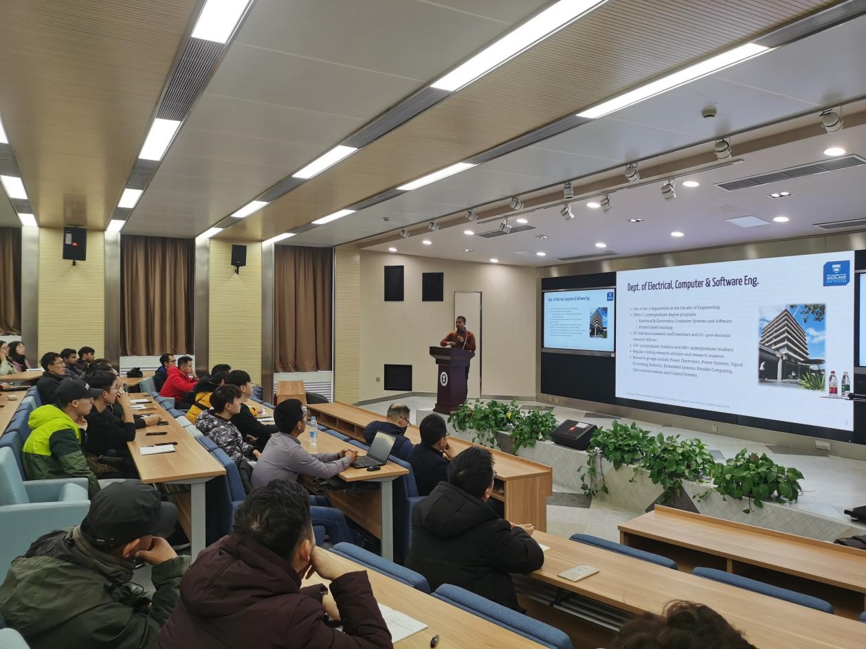 12月10日上午9点,Duleepa博士在南湖校区博五楼A-407作了题为“Novel Wireless EV Charging Systems – Recent Research Advances”的报告,报告由夏晨阳副教授主持。报告期间,Duleepa博士首先介绍了无线电能传输系统的概念和分类,并介绍了IPT系统的基本结构。随后,Duleepa 博士从电动汽车无线充电系统的拓扑、特点、性能等多方面与同学们展开了充分的交流。此外,Duleepa 博士还通过现场演示的方式,并就高功率密度 PCB 的设计和布线规划的注意事项与师生进行了交流。会后,Duleepa博士对参会师生提出的问题进行了生动而形象的讲解。