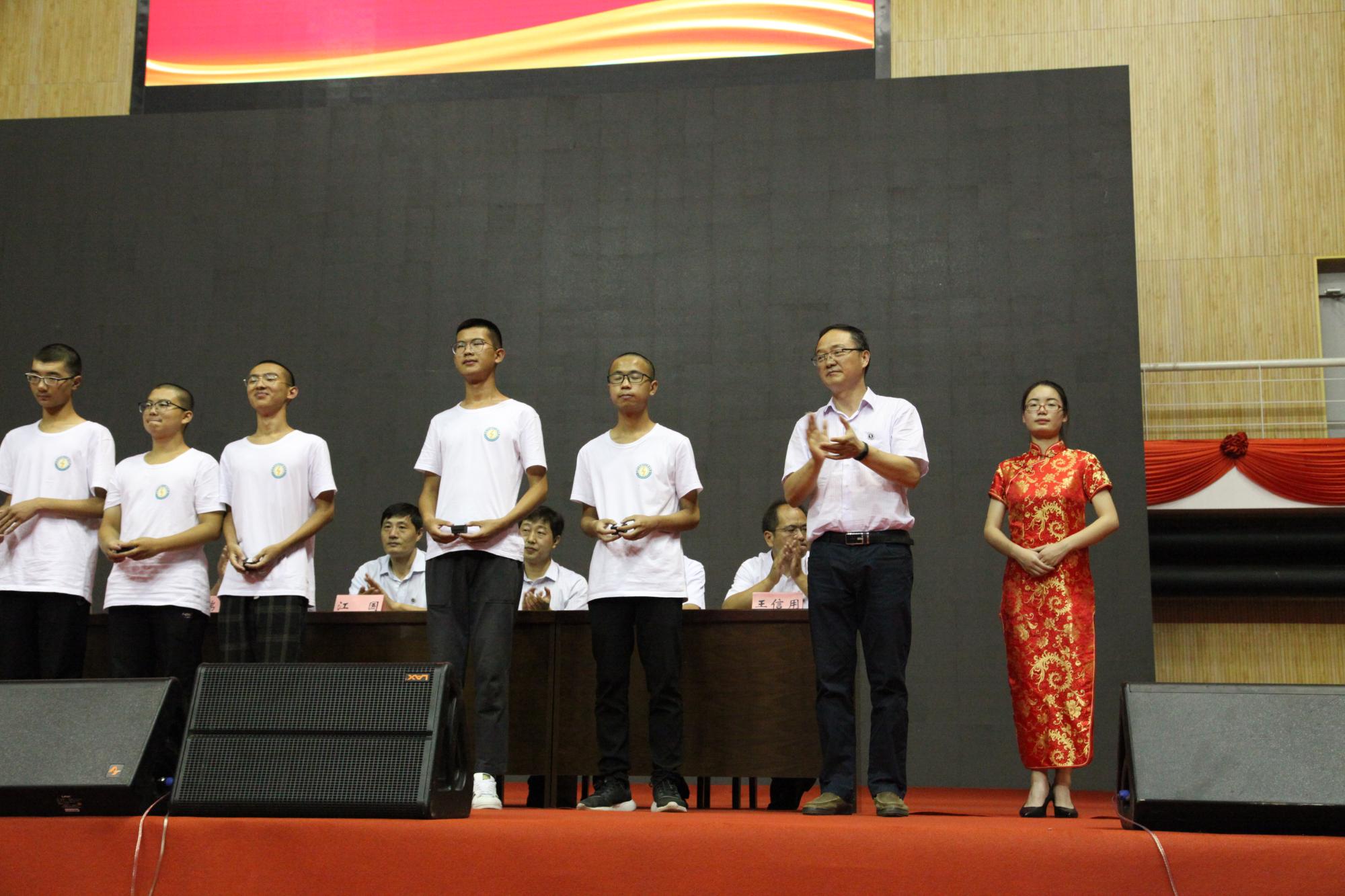 晚上七点整,开学典礼在雄壮庄严的国歌中正式开始。国歌奏毕,院党委书记伍小杰代表旺财28
