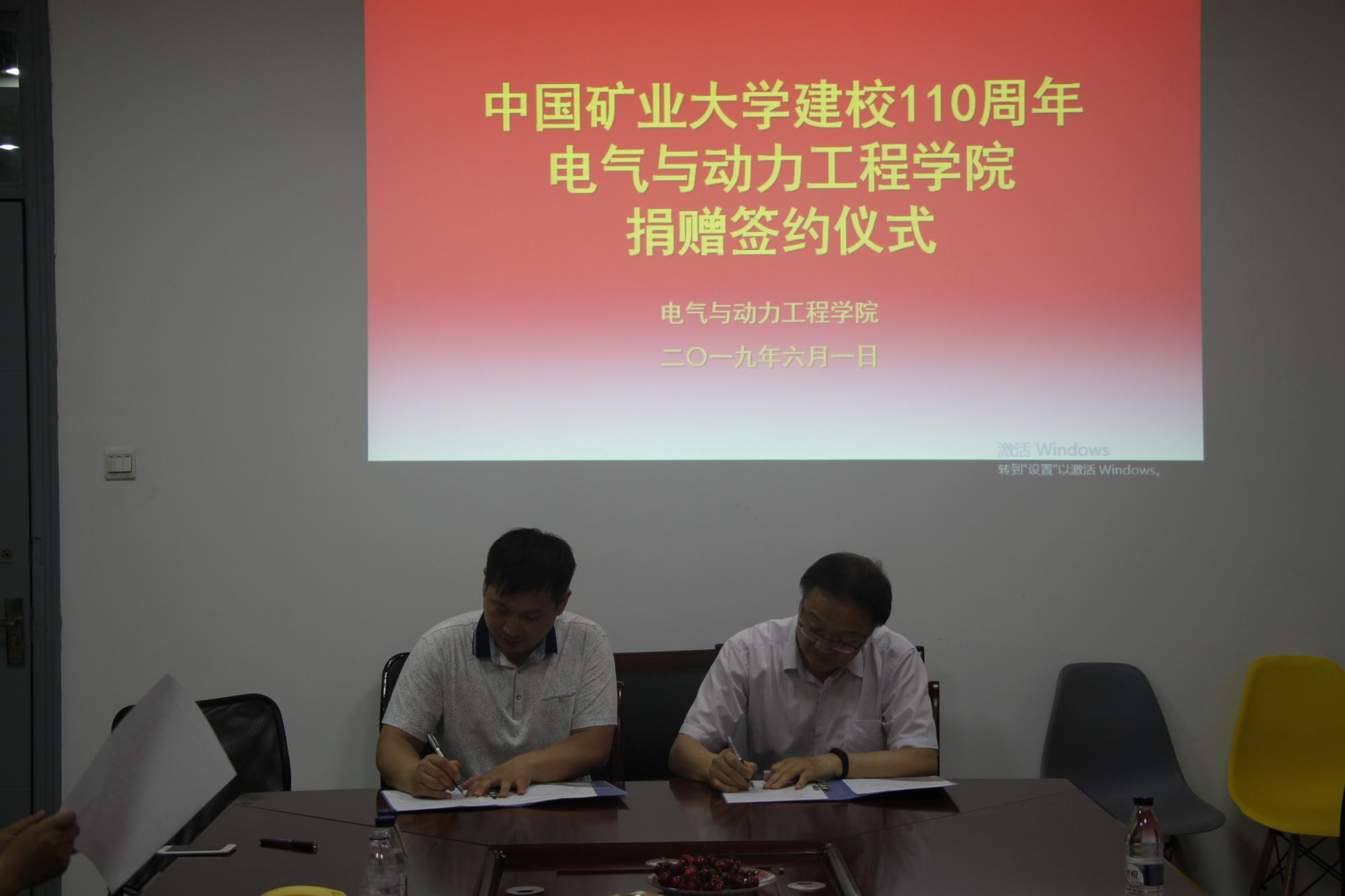 会议还进行了校友捐赠仪式。2000级电气工程与自动化专业校友、上海昌晋电气有限公司的创办人袁峰怀着对矿大深厚的感情,向旺财28