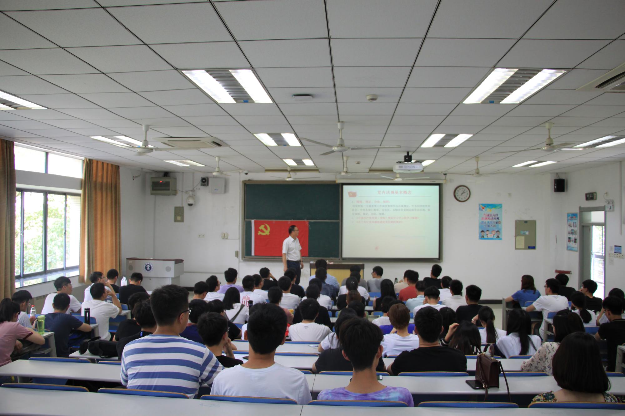 在博学楼一号楼B201教室举办毕业生党员专题党课。党委书记伍小杰担任此次党课的主讲人,2019届全体毕业生党员共同聆听了此次党课。