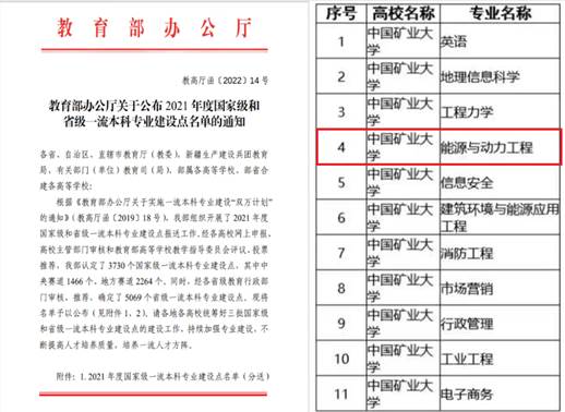 能源与动力工程专业入选国家级一流本科专业建设点。