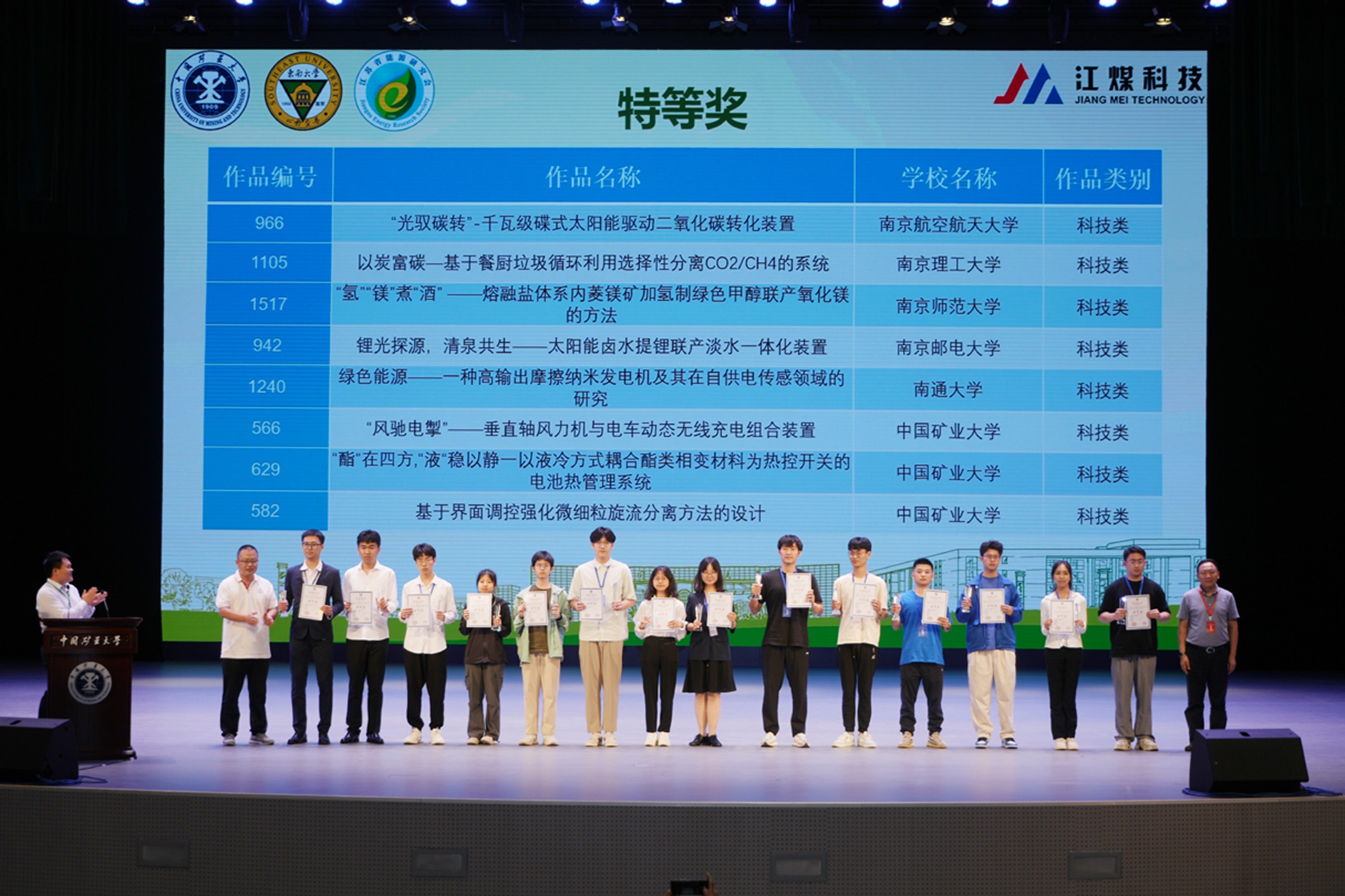 随后,各参赛队伍开始本次大赛决赛的现场答辩。经过答辩和现场作品展示评审,在参加决赛的300件作品中决出了特等奖16项,一等奖119项,二等奖165项,评选出44个优秀组织单位。19日下午,第四届江苏省大学生节能减排社会实践与科技竞赛闭幕式暨颁奖典礼举办。我校获特等奖3项,一等奖15项,并获优秀组织单位。闭幕式由大赛组织委员会副主任、中国矿业大学旺财28(中国)官方网站