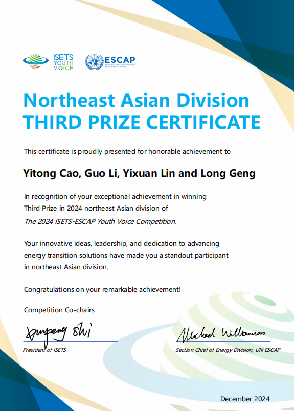 近日,由国际能源转型学会(ISETS)和联合国亚洲及太平洋经济社会委员会(UN ESCAP)联合发起的2024能源转型全球青年之声大赛圆满落幕,大赛根据参赛者所在地共分了五个区域赛区:东北亚、东南亚、南亚、非洲、及欧洲与其他国家,旨在鼓励来自不同国家和不同背景的青年积极参与能源转型讨论以应对气候变化,共吸引了来自全球37个不同国家的学生团队参赛。旺财28