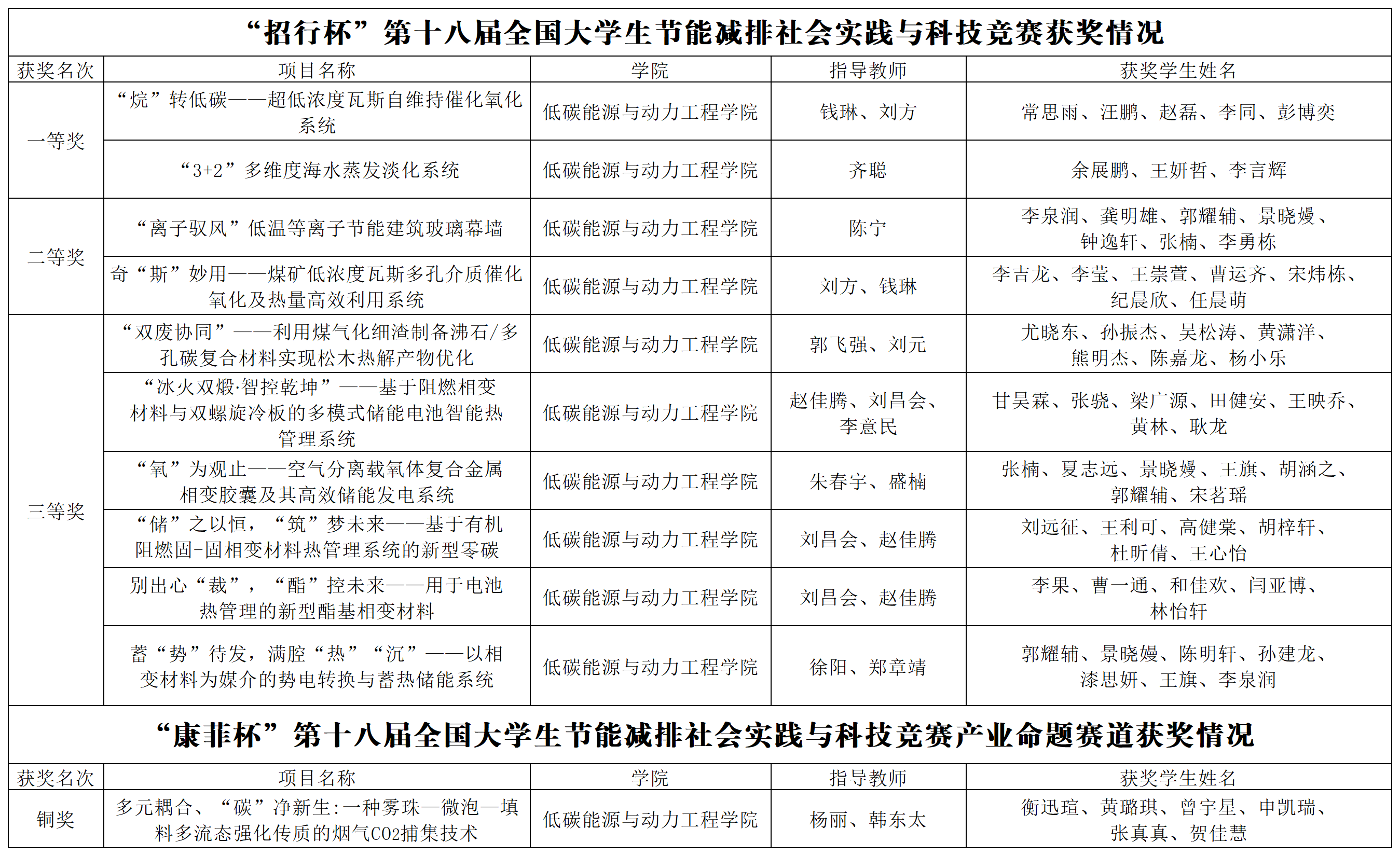 教授陈宁指导,李泉润、龚明雄、郭耀辅、景晓嫚、钟逸轩、张楠、李勇栋同学共同研究的项目“‘离子驭风’低温等离子节能建筑玻璃幕墙”项目,以及由教授刘方和讲师钱琳指导,李吉龙、李莹、王崇萱、曹运齐、纪晨欣、宋炜栋、任晨萌同学共同研究的作品“奇‘斯’妙用—煤矿低浓度瓦斯多孔介质催化氧化及热量高效利用系统”获得二等奖。“离子驭风”项目针对普通幕墙的能耗大的痛点,运用低温等离子技术、多电极轮替负载控制策略、与玻璃一体化透明镀膜电极与传统玻璃幕墙结构相融合在不影响传统玻璃幕墙美观和功能的前提下,实现高保温性能和低制造成本,为实现绿色建材产业高质量发展的新跨越贡献重要力量。“奇‘斯’妙用”项目作品通过多孔介质催化氧化+瓦斯浓度智能调控+热量高效利用,解决了我国煤矿低浓度瓦斯烧不着、波动大、用不好的难题,实现了废弃能源的回收并显著降低碳排放,助力煤矿瓦斯减排及利用,推动“双碳”目标实现。