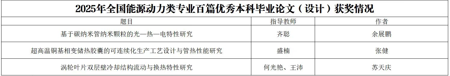3名毕业生论文经专家委员会评审和教育部高等学校能源动力类专业教学指导委员会审议通过,被遴选为2025年全国能源动力类专业百篇优秀本科毕业论文(设计)。