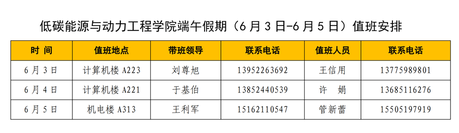 端午节假期值班安排