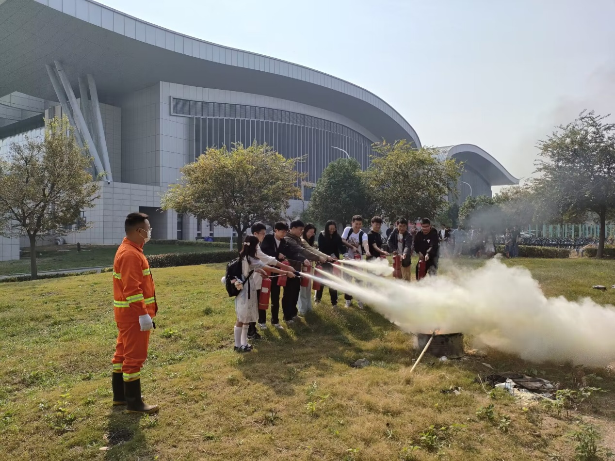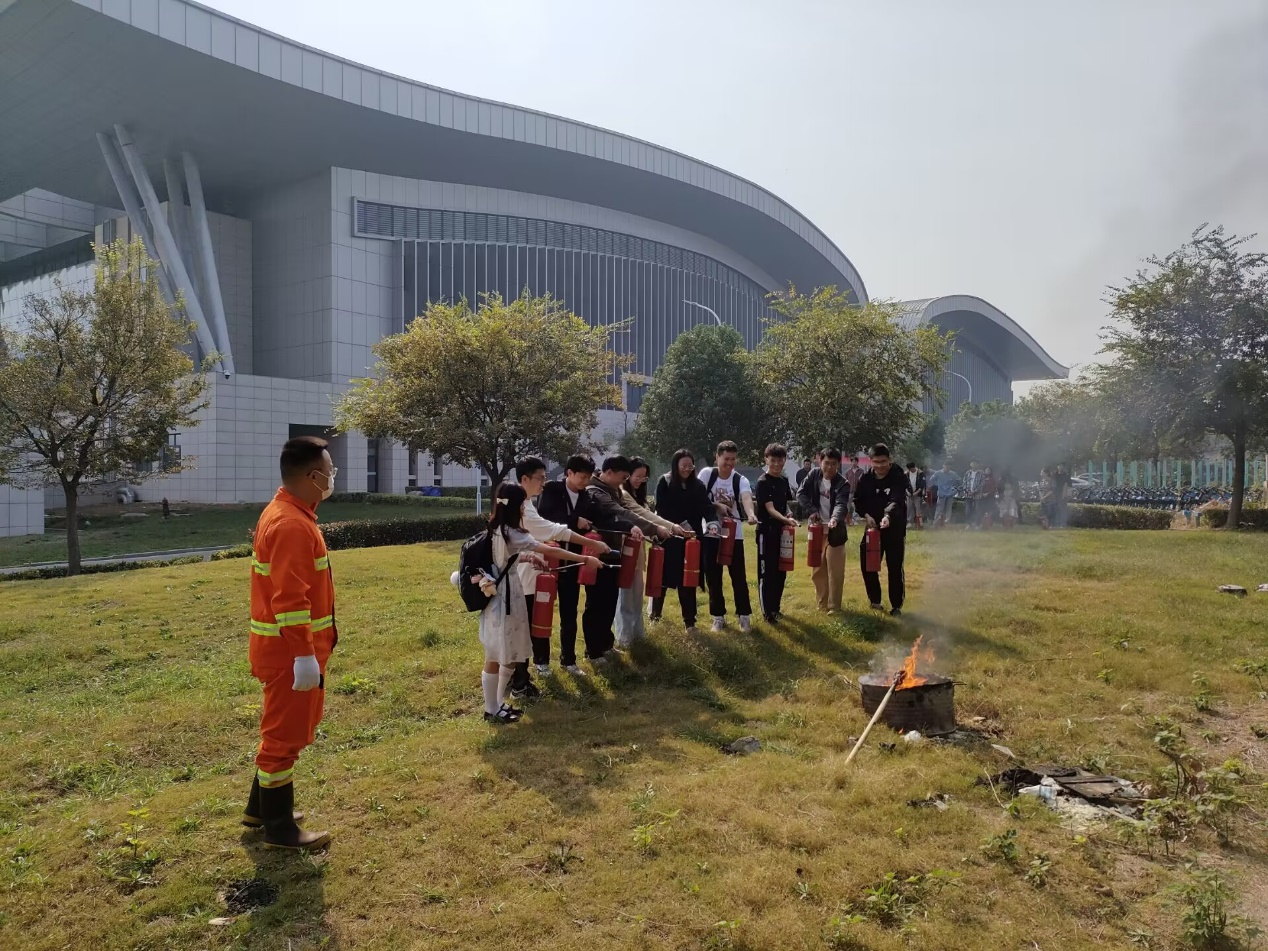讲座之后,在体育馆西侧进行消防灭火演练。